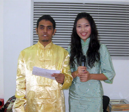 空乘專業(yè)學(xué)生劉佳樂(lè)與也門留學(xué)生Ebrahim共同擔(dān)任了此次活動(dòng)的主持人