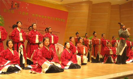 據(jù)介紹,觀摩營(yíng)活動(dòng)由國(guó)家漢辦、孔子學(xué)院總部主辦,重慶市教委、重慶師范大學(xué)共同承辦,這項(xiàng)活動(dòng)也是正在重慶舉行的第三屆“漢語(yǔ)橋”世界中學(xué)生中文比賽的重要組成部分。重慶師范大學(xué)空乘專業(yè)2010級(jí)同學(xué)們還負(fù)責(zé)了漢語(yǔ)橋多個(gè)在重慶的大型活動(dòng)禮儀、接待和頒獎(jiǎng)等工作,她們?cè)诖舜位顒?dòng)中的優(yōu)秀表現(xiàn),對(duì)金通航空培訓(xùn)服務(wù)有限公司也起到了很好的宣傳作用。