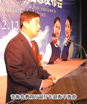 焦殿成董事長在致辭中提到:要培養(yǎng)出具有青藏高原文化背景、掌握藏漢英三語的特色空乘人才,將眾多的少數(shù)民族莘莘學(xué)子送上藍(lán)天,成為令人羨慕、陽光職業(yè)的民航乘務(wù)員、安全員,讓青藏高原勤勞善良人民的子孫后代走向國際、國內(nèi)高端服務(wù)和管理崗位,這是利于當(dāng)今、著眼未來、功在長遠(yuǎn)的千秋偉業(yè)。 趙海平副廳長代表青海省教育廳對雙方合作開辦空乘專業(yè)成功簽約表示了熱烈祝賀。并指出由青海師范大學(xué)與金通航空培訓(xùn)服務(wù)有限公司合作開辦的空乘專業(yè)正式簽約,落戶師大,落戶青海,這是在全國民航業(yè)改革開放、科學(xué)發(fā)展、快速繁榮,青海省深入貫徹落實教育規(guī)劃綱要,推動高等教育事業(yè)科學(xué)發(fā)展的大背景下,校企雙方審時度勢、開拓創(chuàng)新、與時俱進(jìn)的重大舉措,是推動青海省教育事業(yè)改革和發(fā)展的創(chuàng)新之路、希望之路。