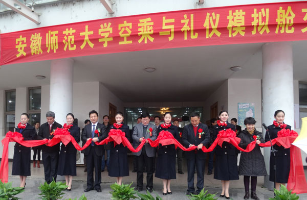 12月17日,安徽師范大學(xué)空乘專業(yè)模擬艙、CBT實驗室交接儀式正式落成。北京廣慧金通教育科技有限公司董事長焦殿成、副總經(jīng)理盛美蘭和我校黨委書記顧家山、副校長李進華、教務(wù)處處長朱家存以及空乘管委會其他成員、傳媒學(xué)院其他領(lǐng)導(dǎo)出席儀式。儀式由傳媒學(xué)院黨委書記胡靖書記主持。