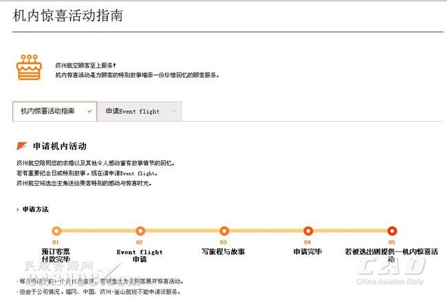 相較于其它低成本航空公司,濟(jì)州航空在其官網(wǎng)推出“申請機(jī)上驚喜活動(Event flight)”,旅客可以在其濟(jì)州航空網(wǎng)站申請機(jī)上求婚或重要紀(jì)念日安排等一些特殊的機(jī)上活動。申請后濟(jì)州航空將做出篩選,為乘客送上特別的感動與驚喜時(shí)光。這樣精心的營銷策劃無疑對年輕群體非常具有吸引力。