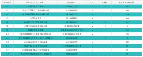 境內(nèi)141部飛行學(xué)校航空器類別和整體訓(xùn)練容量統(tǒng)計表,中國民航飛行學(xué)院位列第一位。