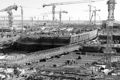 站在由腳手架搭建的“觀景臺”上,李建華指著遠(yuǎn)處說:“在地下結(jié)構(gòu)施工中,技術(shù)攻關(guān)的難題主要有三個,地下二層勁性鋼結(jié)構(gòu)施工、地下一層隔震支座施工以及解決運(yùn)輸難題的棧橋施工。”勁性鋼結(jié)構(gòu)是使用型鋼等既能受壓也能受拉的構(gòu)件作為主結(jié)構(gòu)的鋼結(jié)構(gòu),與之相對應(yīng)的是柔性鋼結(jié)構(gòu)。