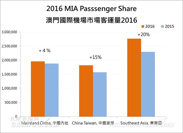 對于澳門國際機場在2016年創(chuàng)下的新紀錄,主要基于機場各營運單位共同努力以及緊密合作,配合澳門特區(qū)政府打造澳門成為世界旅游休閑中心的政策以及充分利用機場自身優(yōu)勢。2016年澳門國際機場繼續(xù)引入新航空公司,本年度合共有7間新的航空公司的加入,包括: AirExplore SRO、越捷航空、遠東航空、首爾航空、印度尼西亞獅子航空、俄羅斯皇家航空及泰國皇雀航空。同時,澳門國際機場與航空公司積極研究發(fā)展?jié)撛谑袌龅目尚行,首度利用第五航權發(fā)展俄羅斯到澳門的中長途包機服務。新航線方面,2016年澳門國際機場新增3個航點,分別是中國貴陽、印度尼西亞美拉多及日本福岡。新航空公司的加入及航線的開通為本地居民和旅客出行帶來更多選擇和便利。根據(jù)數(shù)據(jù)顯示,中國內地市場上升4%,中國臺灣市場同比上升15%,而東南亞及北亞市場則上升超20%,升幅最為明顯,其中搭乘傳統(tǒng)航空公司及低成本航空公司旅客分別增長16%及9%。