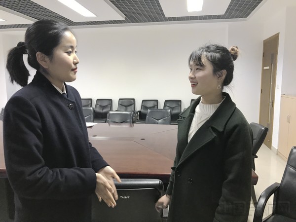通過女飛初選的李麗芬開心地向廈航女飛周潔咨詢(徐爽/攝)
