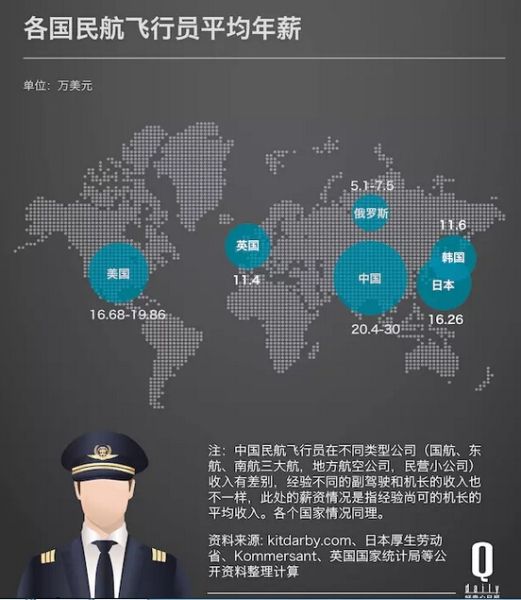 彭博社曾經(jīng)采訪過一位美國聯(lián)合航空公司的前飛行員,他每周都會被中國好多個航空公司“轟炸”,青島航空承諾給他年薪 31.8 萬美元,四川航空的出價是 30.2 萬美元,而一些新成立的還不算太有名的中國航空公司,如今給出的薪資都能比美國達美航空高出 50%。目前在美國主流航空公司任職的資歷尚可的機長平均年薪也就 20 萬美元左右,有些支線航空公司提供給飛行員的第一年工資還能低到 2.5 萬美元。