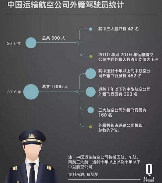雖然目前所有的外籍機長只占中國機長總數(shù)的 7%,但已經(jīng)足夠讓各國航空公司對本國飛行員的出走和即將出走感到憂心忡忡了。